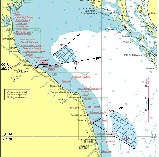 Carta nautica relativa al tratto di mare teatro delle nostre azioni di pesca estive/autunnali. |